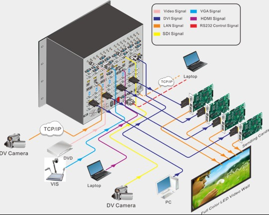 MKP-D小間距LED拼接圖形處理器將多樣化的數字/模擬圖像、視頻源連接至全彩LED大屏幕,采用全新的模塊化設計,單機可自由組合輸入輸出模塊,多臺機器無縫級聯實現控制和信號傳輸的連接。